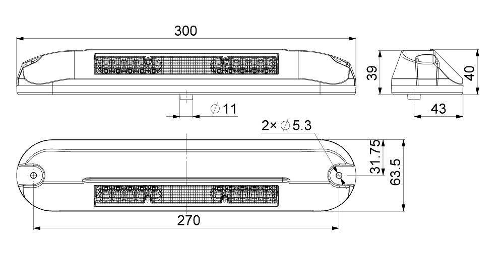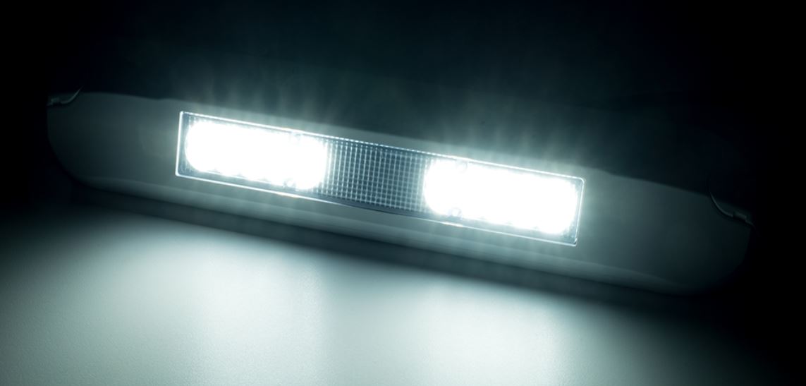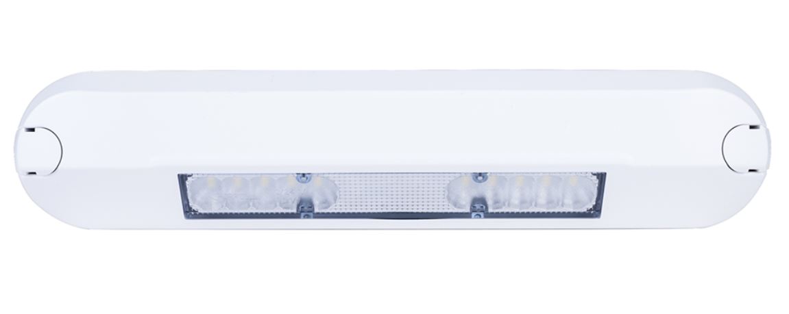 Die Leuchte hat ein aerodynamisches Gehäusedesign, das sich perfekt an flache Fahrzeugoberflächen anpasst. Sie verfügt über Schraubkappen zur Befestigung und eine spezielle Dichtung unter der Leuchte.