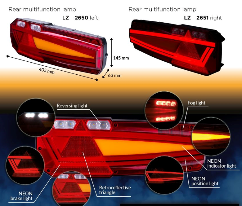 Erhältlich auch MAVIC-Kombileuchten für Sattelschlepper, Zugfahrzeuge, LKW mit Reflektor (rückstrahler), Artikelnummer: LZ2653 rechts und Artikelnummer: LZ2652 links