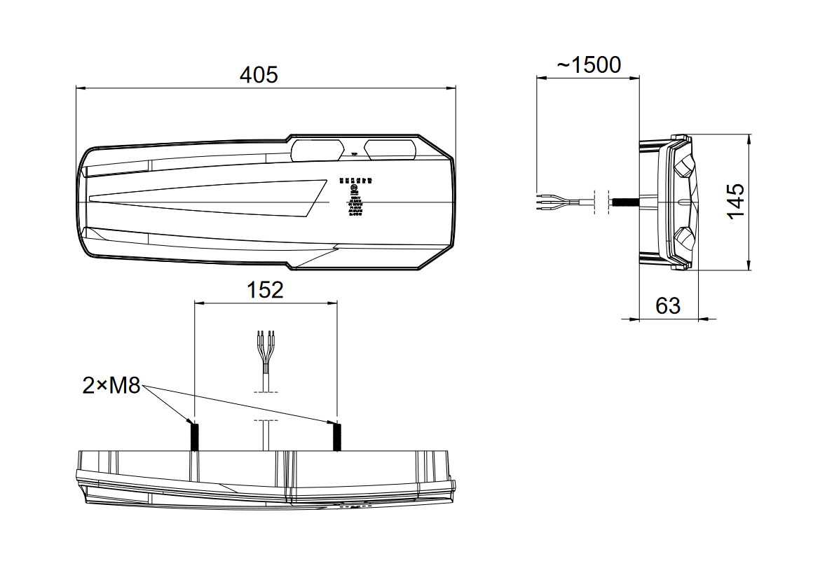• Abmessung: H x B x T: 145 x 405 x 63mm