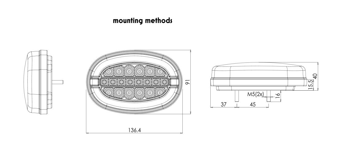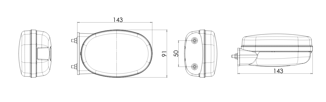 - Led Ovale Front Leuchte H x B x T: 91 x 136,4mm x 40mm ohne Halter