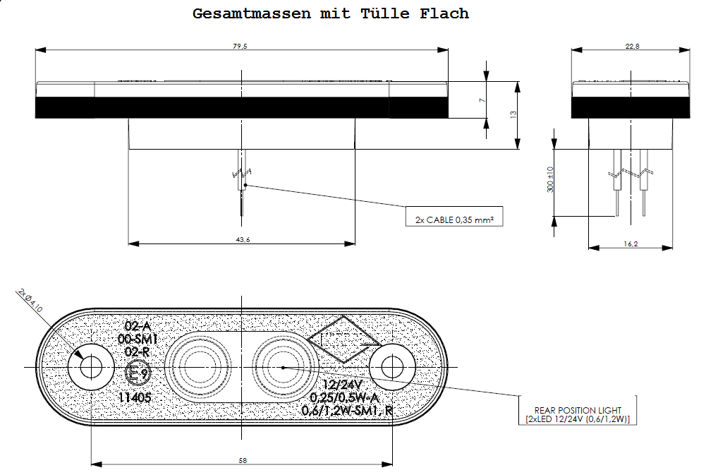Led Positionsleuchte Rot, Led Begrenzungsleuchte Rot inkl. zwei Gummitüllen.