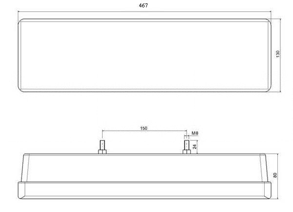 Maße (H/B/T): 130 / 467 / 80 mm