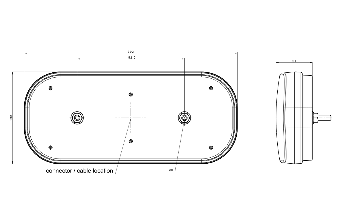 - Abmessungen: H x B x T: 130 x 302 x 51mm Schraubenabstand; 152mm